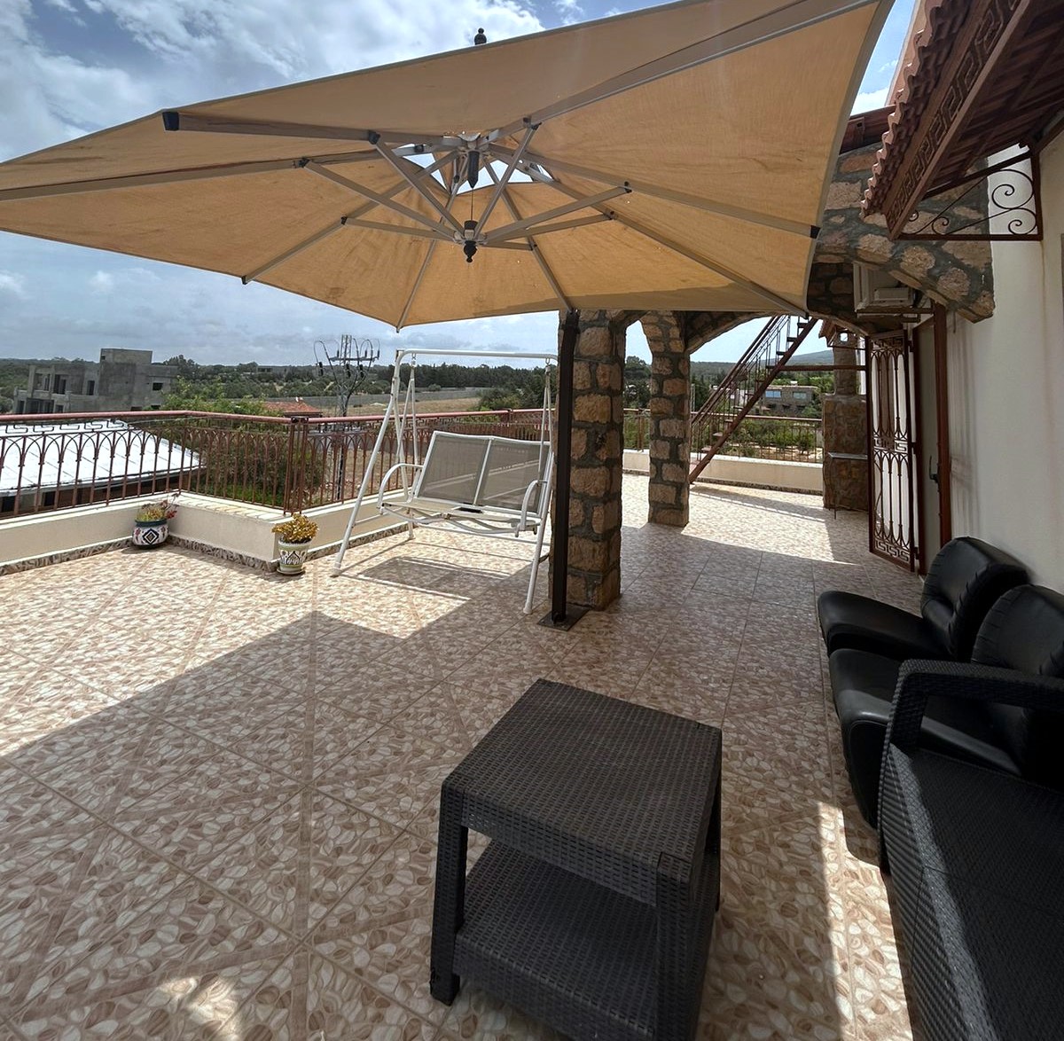 Appartement meublé avec 2 chambres spacieuses, salon lumineux, cuisine équipée, salle de bain moderne, climatisation, internet haut débit, parking sécurisé et 2 terrasses.